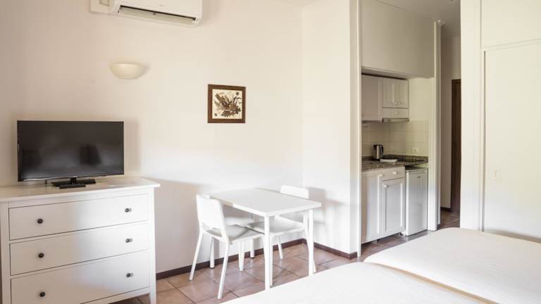 Die klimatisierten Zimmer und Villen bieten ein angenehmes Raumklima und sind mit einer Küchenzeile, einem Kühlschrank, einer Mikrowelle sowie einer Tee-/Kaffeemaschine ausgestattet. Jedes Zimmer verfügt über eine eigene Terrasse, einige mit Hängematte und mit Blick auf die Berge. Zur Ausstattung gehören auch ein Safe, eine Minibar, Kabel-TV sowie kostenfreies Wifi. Die Bäder sind mit einer Dusche und einer Badewanne ausgestattet.