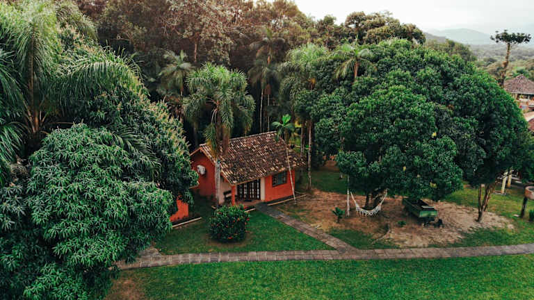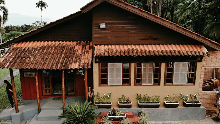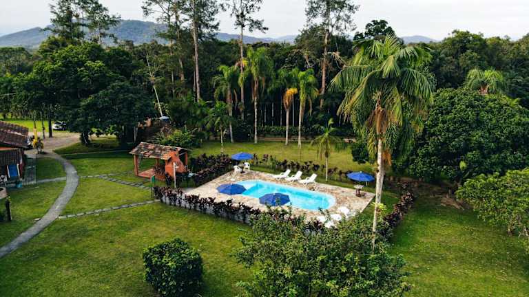 Die Unterkunft liegt in Morretes, umgeben von einer idyllischen Gartenlandschaft und in der Nähe von Wanderwegen.