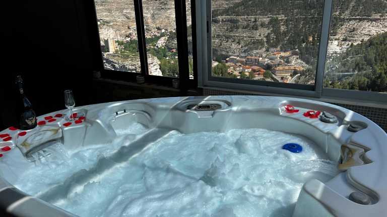 Casas Rurales Maribel - Complejo El Tejar - Apartamentos con jacuzzi in Alcalá del Júcar bietet eine heimelige Atmosphäre mit individuellen Wohneinheiten, die über eine voll ausgestattete Küche, Klimaanlage und eine Terrasse mit Grillmöglichkeiten verfügen. Die Gäste können den Whirlpool in der Unterkunft nutzen und haben Zugang zum kostenlosen Wifi.