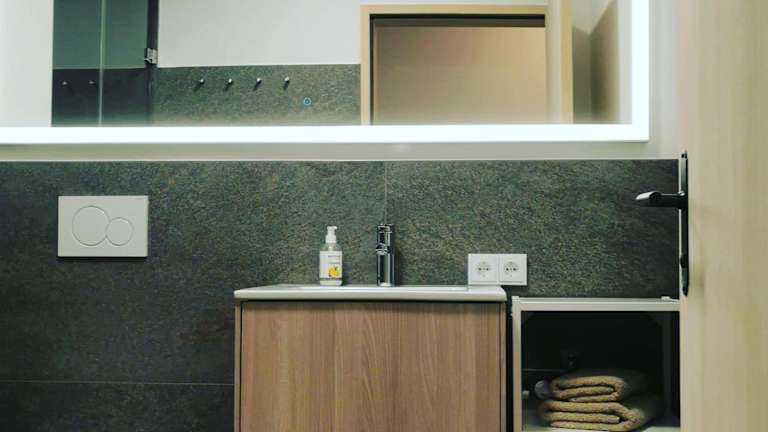 Die Ferienwohnung verfügt über 1 Schlafzimmer und ist mit einem TV mit Satellitenkanälen ausgestattet. Die gut ausgestattete Küche beinhaltet einen Kühlschrank und einen Geschirrspüler. Zudem gibt es 1 Badezimmer mit einer Dusche. Handtücher und Bettwäsche werden zur Verfügung gestellt.