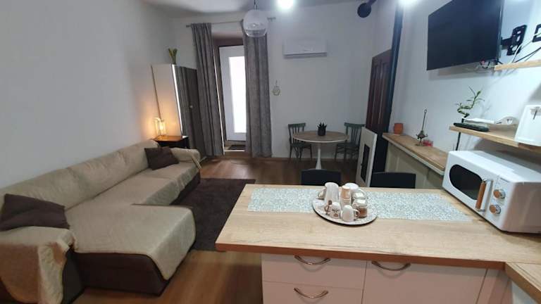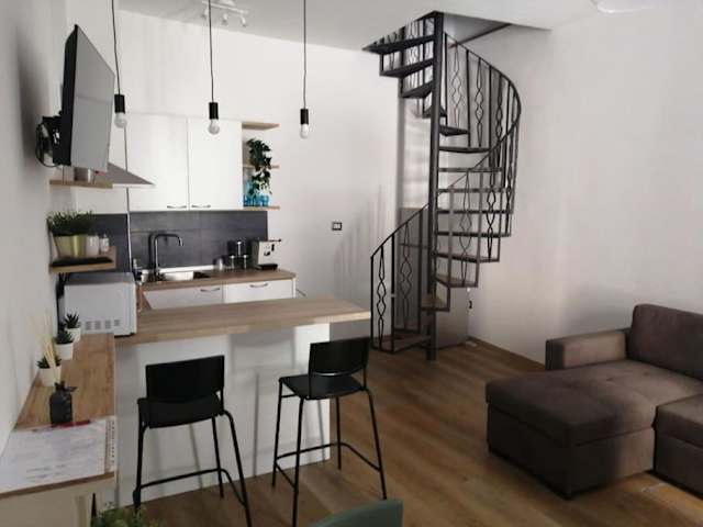 Die Ferienwohnung besteht aus 1 Schlafzimmer und einem Wohnzimmer. Eine voll ausgestattete Küche mit Kühlschrank und Kaffeemaschine sowie ein Badezimmer mit Bidet und Dusche stehen zur Verfügung. Handtücher und Bettwäsche werden bereitgestellt.