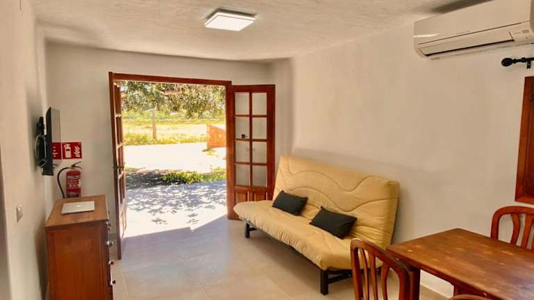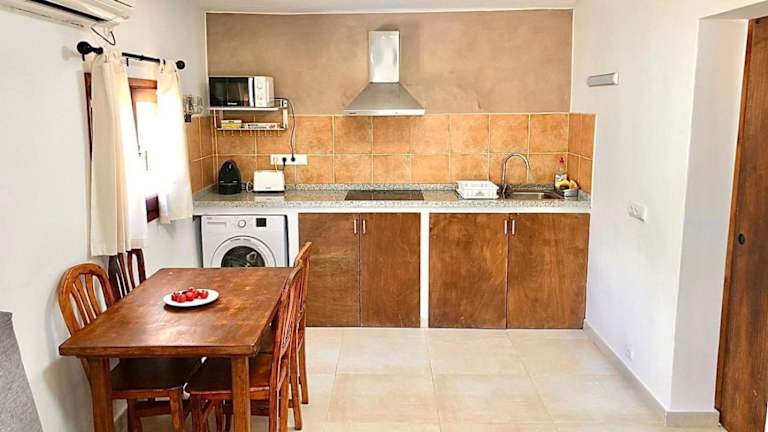 Das Ferienhaus ist klimatisiert und besteht aus einem Schlafzimmer, einem Wohnzimmer und einer voll ausgestatteten Küche mit Kühlschrank und Kaffeemaschine. Es gibt ein Badezimmer mit Dusche und Haartrockner; Handtücher und Bettwäsche werden gestellt.
