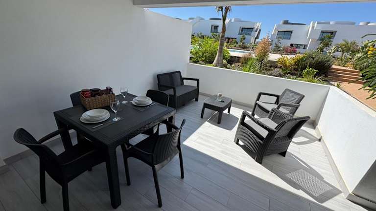 Die Ferienwohnung umfasst 1 Schlafzimmer, ein Wohnzimmer und eine gut ausgestattete Küche. Ein modernes Badezimmer mit Bidet und Dusche ist ebenfalls vorhanden. Die Unterkunft bietet kostenfreies Wifi, einen Satelliten-Flachbild-TV, sowie Handtücher und Bettwäsche. Die Terrasse ermöglicht einen herrlichen Blick auf den Pool.