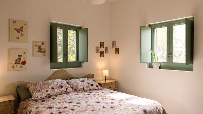 Das Ferienhaus verfügt über zwei Schlafzimmer und ein Wohnzimmer. Die voll ausgestattete Küche beinhaltet einen Kühlschrank und eine Kaffeemaschine. Zudem sind ein Badezimmer mit Bidet und Dusche vorhanden. Die Unterkunft kann zusätzliche Handtücher und Bettwäsche gegen Aufpreis bereitstellen.