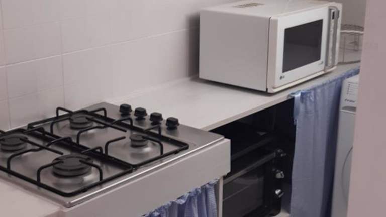 Die Unterkunft bietet eine voll ausgestattete Küche mit Kühlschrank, Ofen, Mikrowelle und Kaffeemaschine, wodurch die Zubereitung von Mahlzeiten bequem möglich ist.