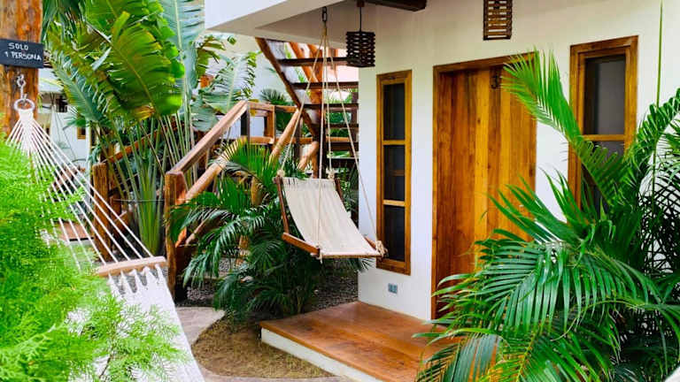 Das Hotel Casitas Pacific befindet sich in Popoyo, nur einen Katzensprung vom herrlichen Strand Playa Popoyo entfernt. Die Umgebung bietet entspannende Ausblicke auf den Garten.