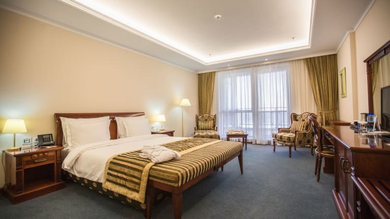 Das Caspian Riviera Grand Palace Hotel hat elegant gestaltete Zimmer, ein Wellnesscenter mit Innenpool und finnischer Sauna sowie kostenloses WLAN. Die Unterkunft bietet zudem einen Wintergarten, eine 24-Stunden-Lobbybar und einen Bankettsaal für bis zu 250 Personen. Für Geschäftsreisende stehen Konferenzräume zur Verfügung. Die Gäste dürfen sich über ein Aquarium mit einzigartigen Störarten freuen.