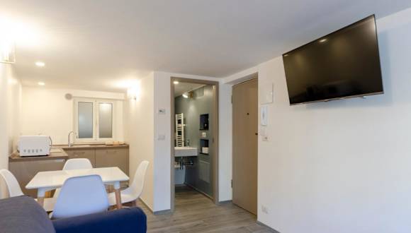 Die Ferienwohnung verfügt über 1 Schlafzimmer und 1 Badezimmer, das mit einem Bidet, einer Dusche und einem Haartrockner ausgestattet ist. Die Küche ist mit einem Kühlschrank, einer Mikrowelle sowie einer Kaffeemaschine eingerichtet.