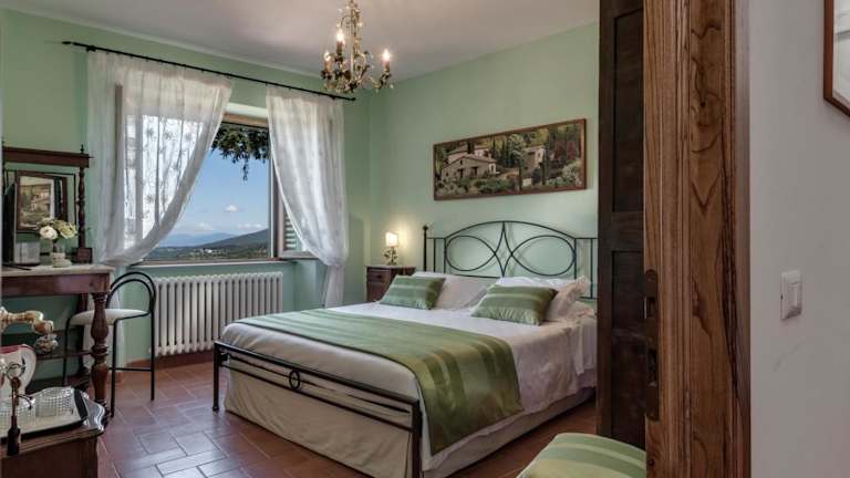 Die in toskanischem Stil eingerichteten Zimmer sind klimatisiert und verfügen über einen Flachbild-TV. Einige Zimmer bieten einen Blick auf den Garten oder die Stadt. Die Badezimmer sind mit Hausschuhen sowie einer Badewanne oder Dusche ausgestattet.