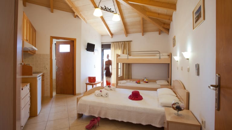 A family-run hotel with verdant gardens and relaxing ambiance, patios and outdoor settings with bbq facilities and private parking on spot. A genuine sense of hospitality in a very secure environment just 2 min away from the center of Plakias, gives to families, couples and solo visitors the feeling to be home, offering ideal vacation worth to remember.