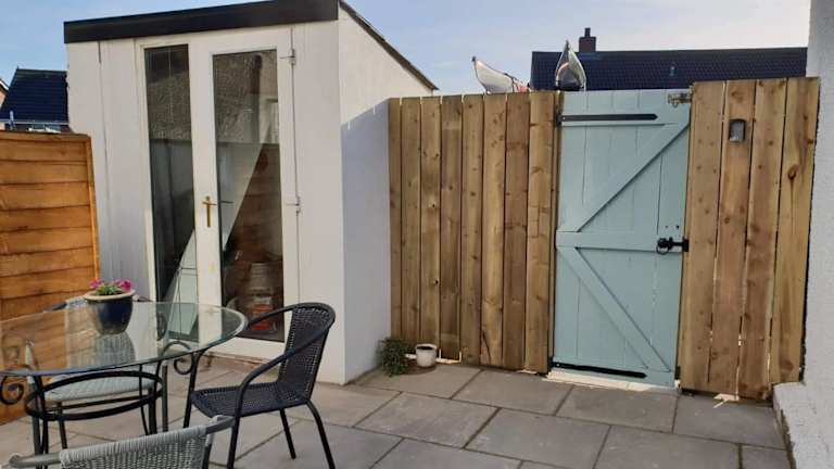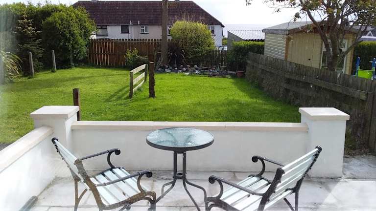 Das Ferienhaus verfügt über zwei Schlafzimmer und ein Badezimmer. Die Ausstattung umfasst Bettwäsche, Handtücher sowie einen Flachbild-TV. Eine voll ausgestattete Küche und ein Essbereich sind ebenfalls vorhanden. Gäste können die Terrasse mit Meerblick nutzen.