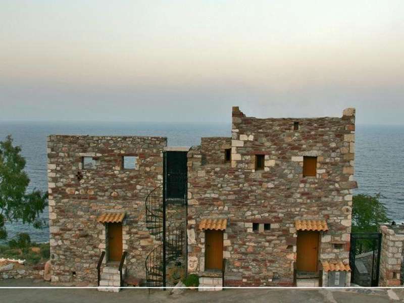 Castle Rizaraki, ein familiengeführtes, aus Stein erbautes Hotel mit traditioneller Architektur in der Region Mani, bietet Unterkünfte im Landhausstil. Die klimatisierten Zimmer verfügen über typische Steinmauern, traditionelle Möbel und Balkone mit Blick auf den Lakonischen Golf.