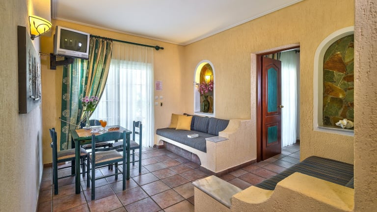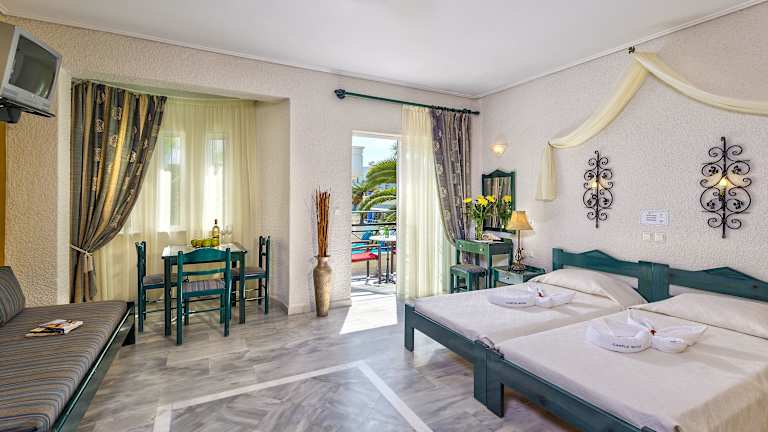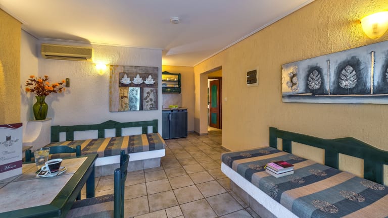 Die klimatisierten Zimmer im Hotel Castle Suites sind mit einem Kleiderschrank, einer Kaffeemaschine, einem Kühlschrank, einer Herdplatte und einem Flachbild-TV ausgestattet. Jedes Zimmer verfügt über eine Terrasse und ein eigenes Badezimmer mit Dusche. Bettwäsche und Handtücher werden bereitgestellt.