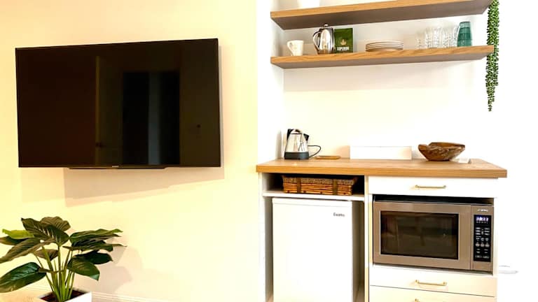 Die Ferienwohnung umfasst 2 Schlafzimmer und 1 Badezimmer, das mit einer Dusche, einer Badewanne sowie kostenlosen Pflegeprodukten ausgestattet ist. Die Küchenzeile bietet einen Kühlschrank, eine Mikrowelle, einen Toaster, eine Kaffeemaschine sowie einen Wasserkocher. Die Unterkunft ist klimatisiert und ermöglicht einen bequemen Aufenthalt.