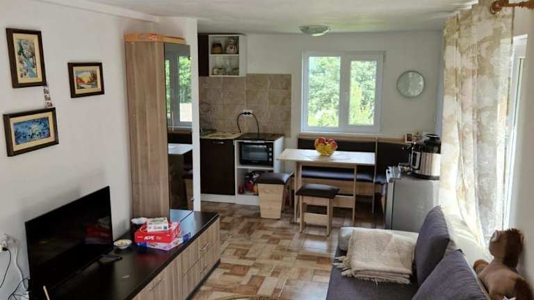 Das Ferienhaus bietet ein Schlafzimmer, ein Wohnzimmer mit einem Flachbild-TV sowie eine gut ausgestattete Küche mit Kühlschrank und Ofen. Das Badezimmer ist mit einer Dusche ausgestattet. Handtücher und Bettwäsche sind in der Unterkunft vorhanden.