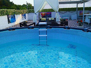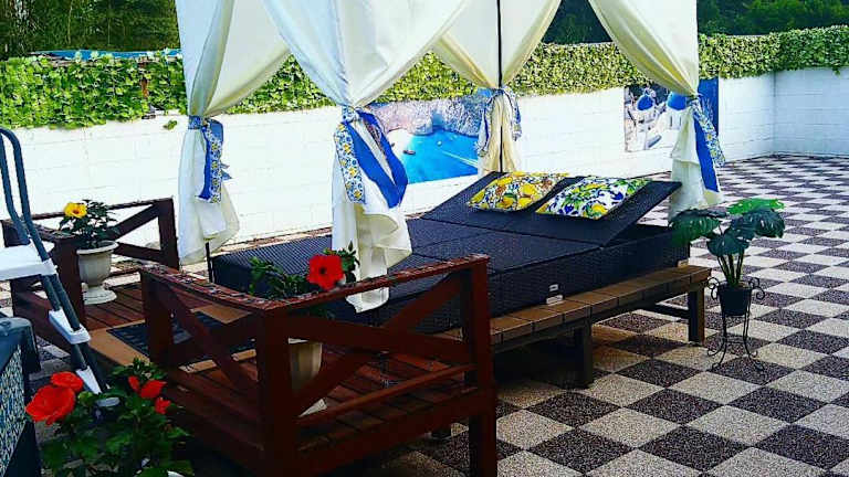 Die Villa bietet ein Schlafzimmer, ein Wohnzimmer und eine voll ausgestattete Küchenzeile mit Kühlschrank und Wasserkocher. Ein Badezimmer mit Bidet und Dusche steht ebenfalls zur Verfügung. Handtücher und Bettwäsche werden bereitgestellt. Die Unterkunft ist klimatisiert und bietet Annehmlichkeiten wie einen Grill und eine Sonnenterrasse.