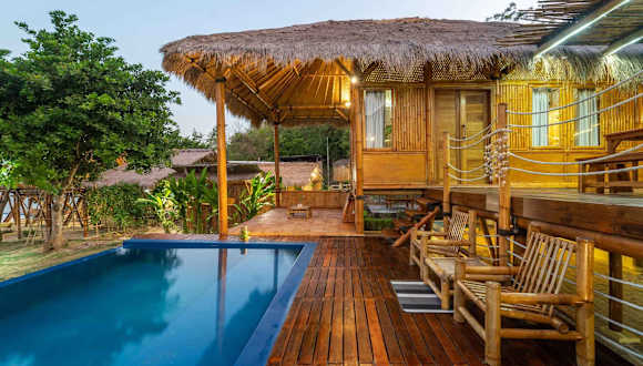 Catappa Village Lombok ist eine Unterkunft, die durch ihre Naturnähe und die Möglichkeit zur Entspannung am eigenen Strandbereich besticht. Die Anlage bietet eine einladende Terrasse, die ideal für entspannte Stunden ist.