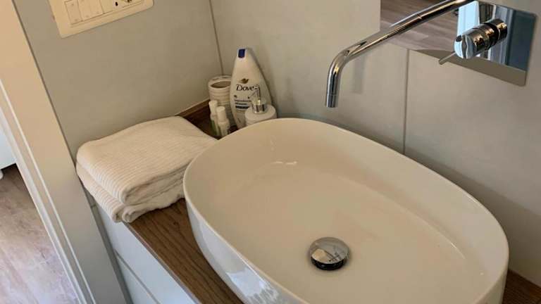 Es besteht die Möglichkeit, Essenslieferungen in die Unterkunft zu bestellen. Die voll ausgestattete Küche beinhaltet einen Kühlschrank und eine Kaffeemaschine, was Selbstverpflegung ermöglicht.