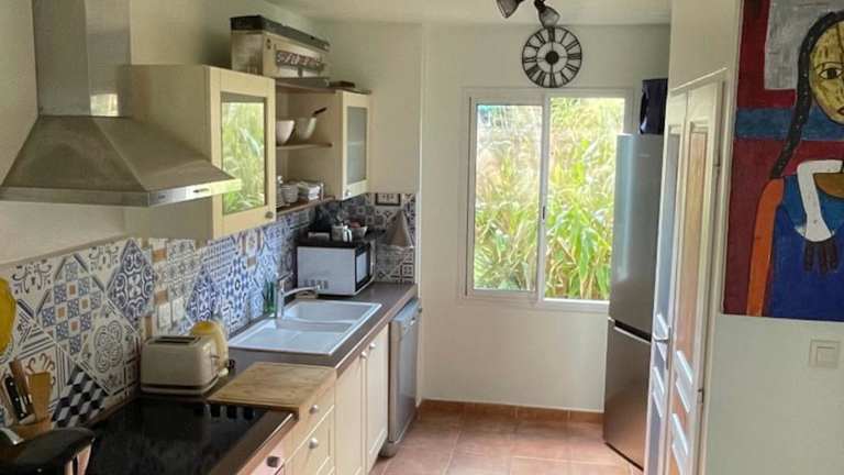 Die Unterkunft besteht aus zwei Schlafzimmern sowie einem Wohnzimmer und einer voll ausgestatteten Küche, die über einen Kühlschrank und eine Kaffeemaschine verfügt. Es sind zwei Badezimmer mit Dusche und Haartrockner vorhanden. Handtücher und Bettwäsche werden bereitgestellt. Die Ferienwohnung ist klimatisiert und bietet bequem Platz für Familien.