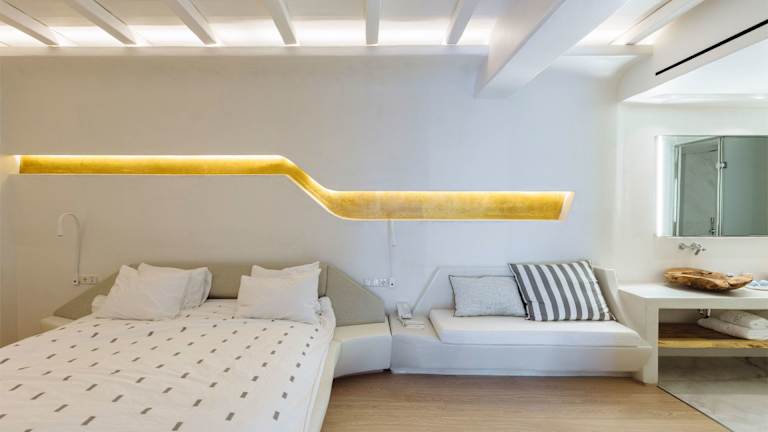 Das Cavo Tagoo bietet eine heimelige Atmosphäre mit minimalistischem Inseldekor, welches sich nahtlos in die Umgebung integriert. Es stehen 80 Zimmer, darunter Junior-Suiten, Suiten und Villen zur Verfügung. Zur Hotelausstattung gehören zwei Aufzüge, eine Rezeption, ein Garten sowie ein 24-Stunden-Service, der den Gästen jederzeit zur Verfügung steht.