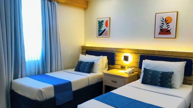 Die Zimmer des Hotels sind mit einer Klimaanlage ausgestattet und bieten verschiedene Bettoptionen, darunter Doppelbetten, Queensize- und Kingsize-Betten. Zur Zimmereinrichtung gehören ein Kühlschrank, ein Schreibtisch, ein Safe sowie ein Flachbild-TV. Die Badezimmer sind mit einer Dusche, einem Haartrockner und Kosmetikartikeln ausgestattet. Das Hotel bietet zudem Familien- und Nichtraucherzimmer.