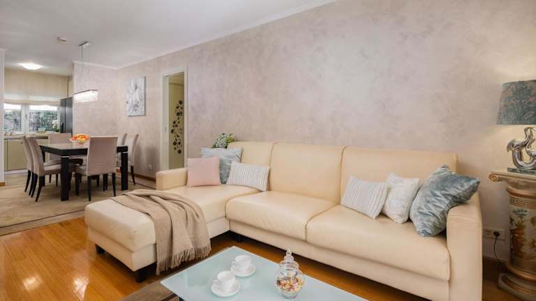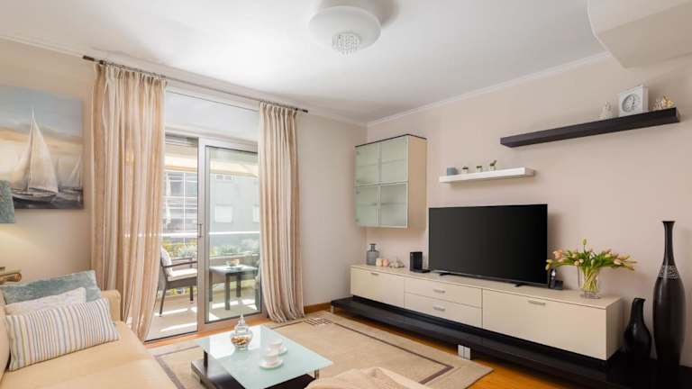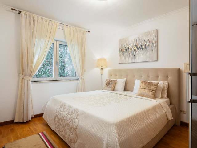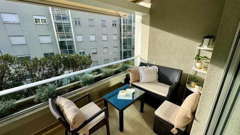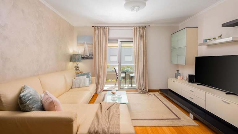 Die Ferienwohnung verfügt über ein Esszimmer, eine voll ausgestattete Küche, einen Balkon mit Gartenblick und bietet Annehmlichkeiten wie einen Flachbild-TV, Bettwäsche und Handtücher. In den schallisolierten Zimmern steht eine Klimaanlage zur Verfügung. Die Unterkunft ist sowohl für Familien als auch für Nichtraucher geeignet.