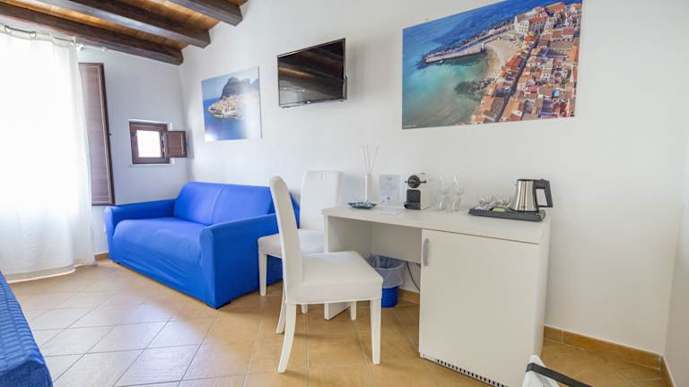 Die Zimmer sind ausgestattet mit Klimaanlage, Schreibtisch, Flachbild-TV, eigenem Badezimmer, Bettwäsche, Handtüchern und einem Balkon mit Stadtblick. Einige Wohneinheiten bieten einen schönen Meerblick. Alle Zimmer sind zudem mit einer Kaffeemaschine und einem Kühlschrank ergänzt.