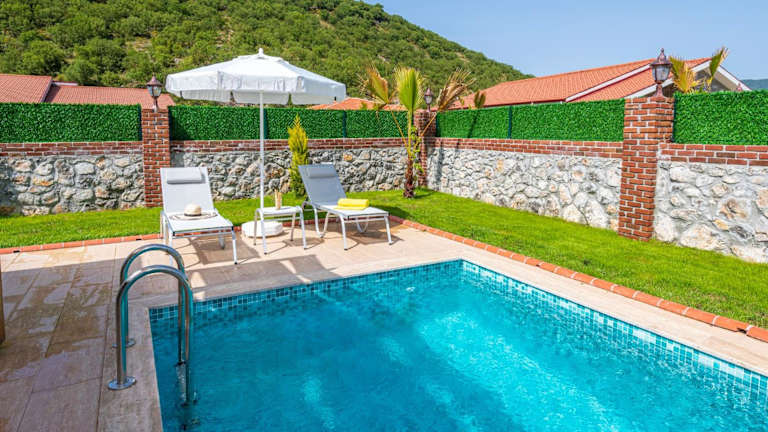 Cemre - 2 Bedroom Holiday Villa in Kayaköy Ölüdeniz bietet Übernachtungsmöglichkeiten mit einem saisonalen Aussenpool, einem Garten und einer Terrasse. Die Villa ist klimatisiert und bietet eine eigene Küche sowie ein Badezimmer. Es steht den Gästen ein kostenloser Privatparkplatz zur Verfügung.