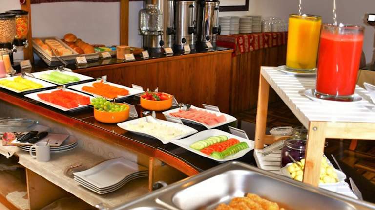 Die Unterkunft bietet verschiedene gastronomische Angebote, darunter ein Restaurant, eine Bar und ein Café. Das Frühstück wird in Form eines Buffets serviert.