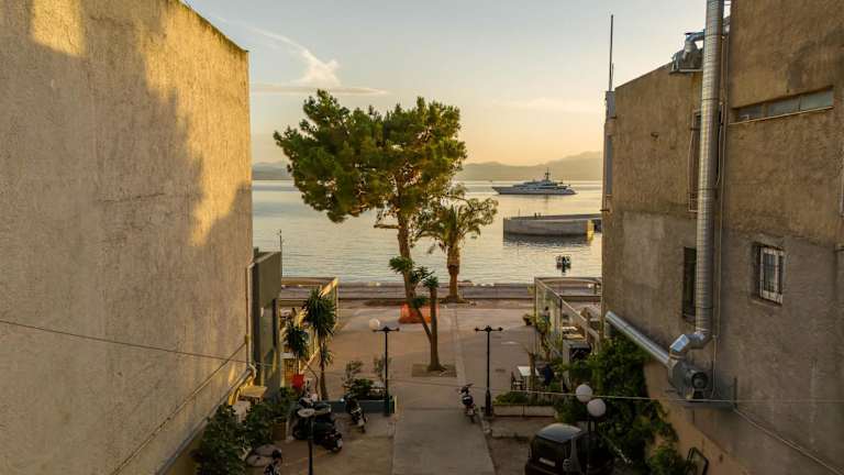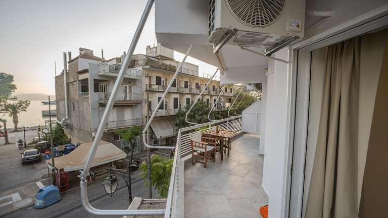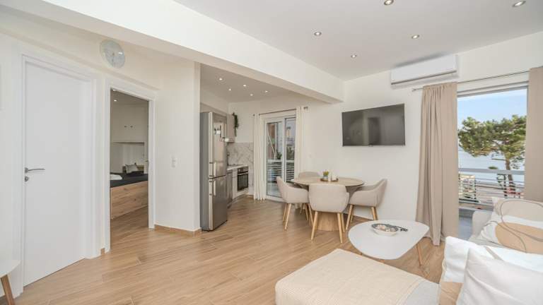 Die Unterkunft Center of Loutraki Ble Property5 besticht durch einen Balkon mit Stadtblick, einen eigenen Strandbereich sowie eine Terrasse. Sie verfügt über Meerblick und kostenloses Wifi in der ganzen Unterkunft.