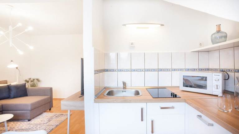 Die Ferienwohnung besteht aus 1 Schlafzimmer, einem Wohnzimmer und einer voll ausgestatteten Küche, die mit Kühlschrank und Kaffeemaschine ausgestattet ist. Zudem steht ein Badezimmer mit Badewanne zur Verfügung. Handtücher und Bettwäsche werden zur Verfügung gestellt.