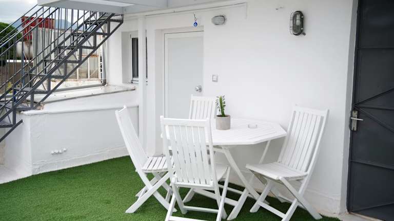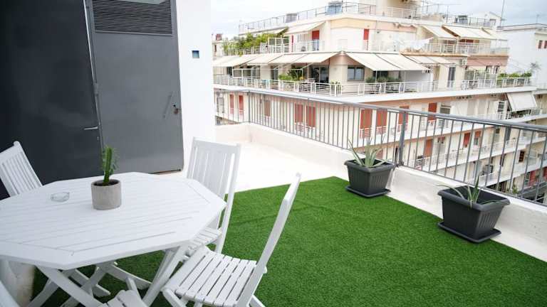 Die Unterkunft Central aesthetic studio with panoramic views bietet klimatisierte Übernachtungsmöglichkeiten mit einem Balkon und kostenlosem Wifi. Die Ferienwohnung verfügt über ein Schlafzimmer, ein Badezimmer und eine voll ausgestattete Küchenzeile. Eine Terrasse mit Stadtblick ist ebenfalls vorhanden.