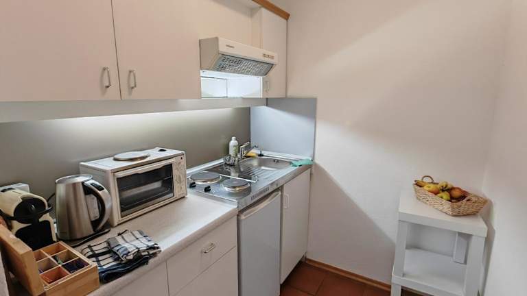 In der Unterkunft sind Essenslieferungen möglich. Die Gäste können auf Wunsch Frühstücks-Behälter zum Mitnehmen erhalten. Eine voll ausgestattete Küche steht zur Verfügung, um Mahlzeiten selbst zuzubereiten.