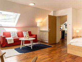 Central Attic - Castle view bietet Übernachtungsmöglichkeiten in einer Ferienwohnung, die eine heimelige Atmosphäre ausstrahlt. Die Lage ermöglicht eine schöne Aussicht auf die Umgebung, insbesondere auf das Schloss.