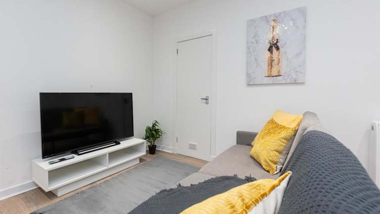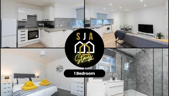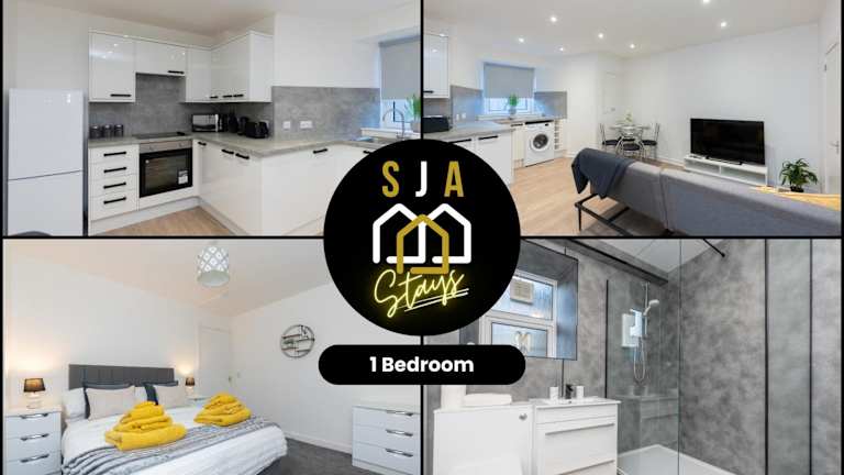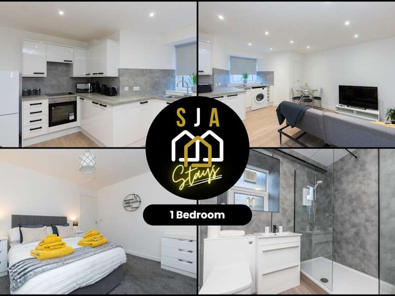 Central City Stay - SJA Stays - 1 Bed Apartment bietet eine heimelige Ferienwohnung mit einem Schlafzimmer, ausgestattet mit einem Wohnzimmer und einem Flachbild-TV. Die Unterkunft ist ideal für Gäste, die eine ruhige und gut gelegene Wohnung in der Stadt suchen.