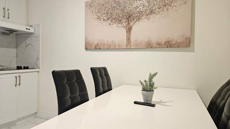 In der Unterkunft steht eine voll ausgestattete Küchenzeile zur Verfügung, die es den Gästen ermöglicht, sich eigene Mahlzeiten zuzubereiten. Es sind Küchengeräte wie Kühlschrank, Mikrowelle, Toaster, Kaffeemaschine und Wasserkocher vorhanden. Weitere Verpflegungsmöglichkeiten sind in der Nähe zu finden.