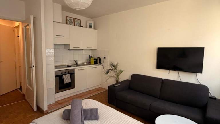 Die Ferienwohnung verfügt über 1 Schlafzimmer und ist mit einem Flachbild-TV mit Satellitenkanälen ausgestattet. Eine gut eingerichtete Küche mit Kühlschrank und Ofen steht ebenfalls zur Verfügung. Das Badezimmer ist mit einem Bidet ausgestattet. Handtücher und Bettwäsche werden bereitgestellt.