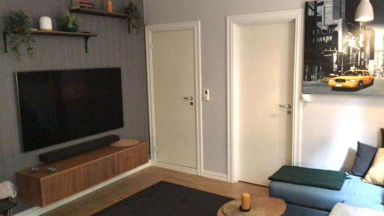 Die Ferienwohnung umfasst ein Wohnzimmer, einen Essbereich, ein Schlafzimmer und ein Badezimmer mit einer Dusche. Die Küche ist mit einem Kühlschrank, einem Geschirrspüler und einem Ofen ausgestattet. Zudem gibt es eine Spielekonsole (PS3) und einen Flachbild-TV.