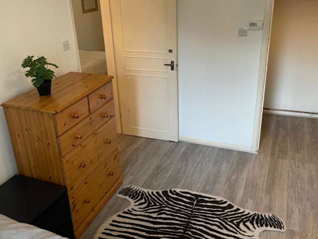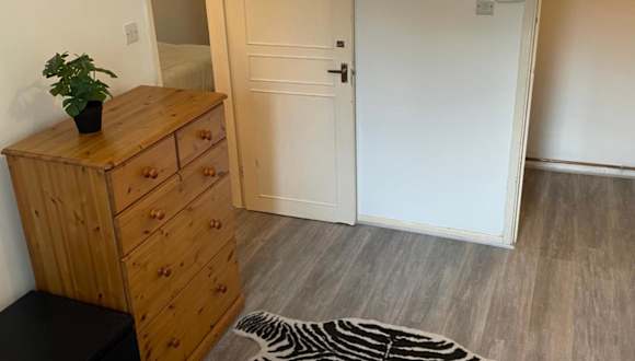 Die Ferienwohnung bietet ein Schlafzimmer, ein Wohnzimmer und eine gut ausgestattete Küche mit Kühlschrank und Ofen. Handtücher und Bettwäsche werden zur Verfügung gestellt.