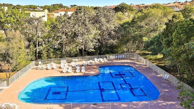 Centre St Tropez - Gd 2 pièces, piscine et parking bietet eine komfortable Ferienwohnung mit einem eigenen Pool und Gartenblick. Die Unterkunft ist klimatisiert und verfügt über eine Terrasse. Es wird kostenloses WLAN sowie ein Privatparkplatz angeboten. Die Unterkunft ist für Nichtraucher und Tiere sind erlaubt.