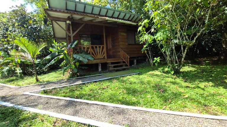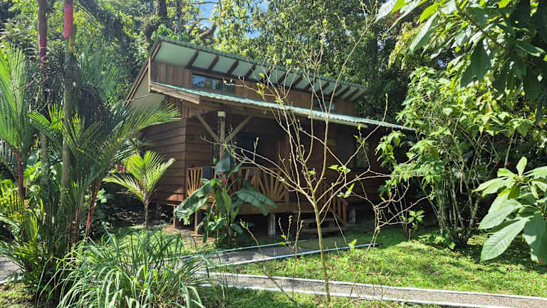 Die Unterkunft Centro Ananda, Cabina, Bambuszelt befindet sich in Guápiles, Limon, Costa Rica, etwa 250 Meter südlich der Strasse zur Abzweigung Rio Blanco.