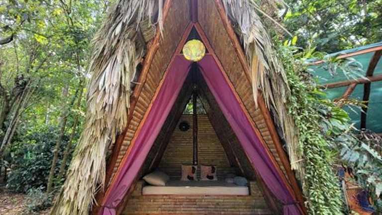 Centro Ananda, Cabina, Bambuszelt bietet ein heimeliges Ambiente mit einem Garten und einer Terrasse, von wo aus die Gäste den Blick auf den Garten geniessen können. Die Besichtigung der Umgebung wird durch die ruhige Lage und die direkte Nähe zur Natur unterstützt. Es ist zu beachten, dass Junggesellen-/Junggesellinnenabschiede sowie ähnliche Feiern in dieser Unterkunft nicht erlaubt sind.