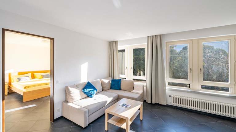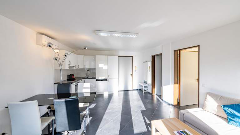 Die Ferienwohnung ist klimatisiert und umfasst ein Schlafzimmer, ein Wohnzimmer sowie eine voll ausgestattete Küche mit Kühlschrank und Kaffeemaschine. Zur Ausstattung gehören zudem ein Badezimmer mit Dusche und Haartrockner. Handtücher sowie Bettwäsche werden bereitgestellt.