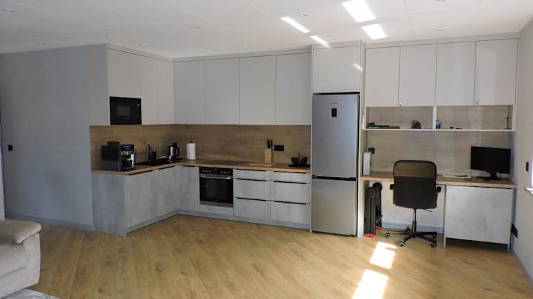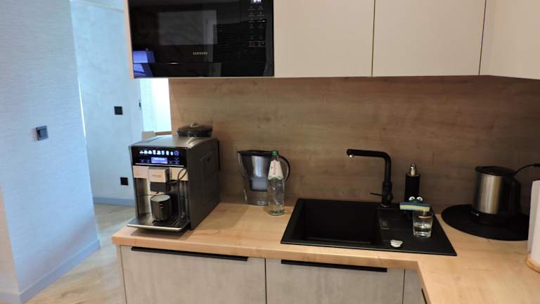 Die Ferienwohnung besteht aus einem Schlafzimmer, einem Wohnzimmer und einer voll ausgestatteten Küchenzeile, die unter anderem mit einem Kühlschrank und einer Kaffeemaschine ausgestattet ist. Außerdem verfügt die Unterkunft über ein Badezimmer mit Dusche und Haartrockner. Zur Ausstattung gehören Klimaanlage, Schallisolierung, Heizung sowie kostenfreies WLAN. Handtücher und Bettwäsche werden bereitgestellt, und Haustiere sind erlaubt.