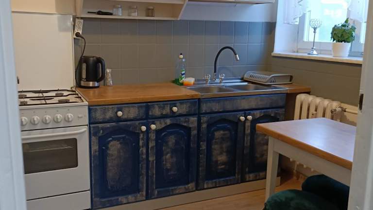 Die Unterkunft Centrum ul Kossaka 12b bei der Galerie verfügt über ein eigenes Balkon und bietet eine heimelige Atmosphäre mit einer voll ausgestatteten Küche.