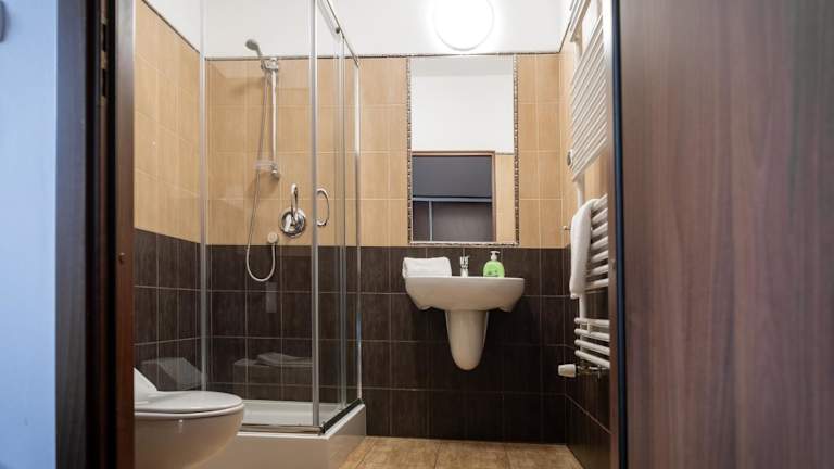 Jedes Zimmer ist ausgestattet mit einem Kleiderschrank, einem Flachbild-TV, einem eigenen Badezimmer, Bettwäsche und Handtüchern.