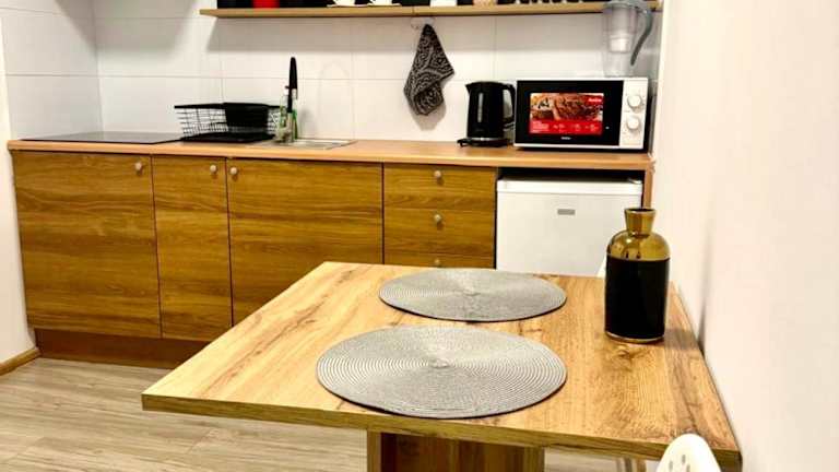 In den Wohneinheiten des Centrum Legnica gibt es eine voll ausgestattete Küche mit einer Herdplatte, einer Mikrowelle, einem Kühlschrank und einem Wasserkocher. Es stehen keine speziellen Verpflegungsmöglichkeiten zur Verfügung, jedoch haben die Gäste die Möglichkeit, ihre eigenen Mahlzeiten zuzubereiten.