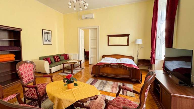 Das Centrum Vendégház befindet sich im Herzen von Eger in einem renovierten, historischen Gebäude. Die Umgebung zeichnet sich durch eine autofreie Zone aus, in der sich Lebensmittelgeschäfte, Bars und ein Minimarkt im Erdgeschoss des Gebäudes befinden. Die Burg von Eger ist 700 m entfernt, während das Thermalbad nur 500 m entfernt liegt.