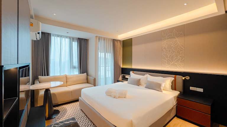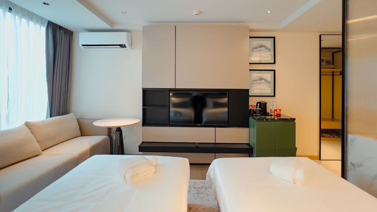 Die Gästezimmer sind mit Klimaanlage, Flachbild-TV mit Kabelkanälen, Kühlschrank, Wasserkocher und einem eigenen Badezimmer mit Dusche ausgestattet. In den Zimmern befinden sich kostenlose Pflegeprodukte sowie Haartrockner. Jedes Zimmer verfügt zudem über einen Kleiderschrank, und einige bieten Stadtblick.