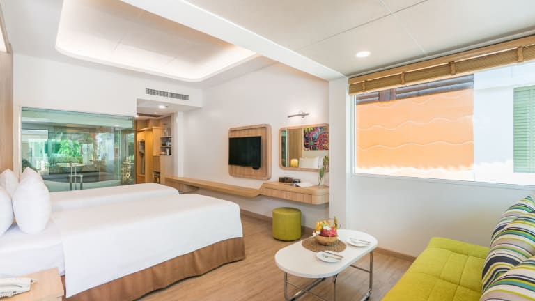 Das Chaba Cabana Beach Resort hat 80 Wohneinheiten mit Klimatisierung. Das Hotel befindet sich direkt an einem wunderschönen Sandstrand, der auch ein Strandclub Café mit internationalen Gerichten hat, Snacks und Cocktails und ein Restaurant mit die viele Sitzgelegenheiten im Freien Blick auf den Strand. Weckdienst und Wäscheservice runden das Dienstleistungspaket ab. Eine kostenfreie Parkmöglichkeit ist am Hotel vorhanden. Die Rezeption des Hotels kümmert sich gerne um einen Shuttle-Service zum Center Chaweng-Strand und das Chaba Samui Resort.